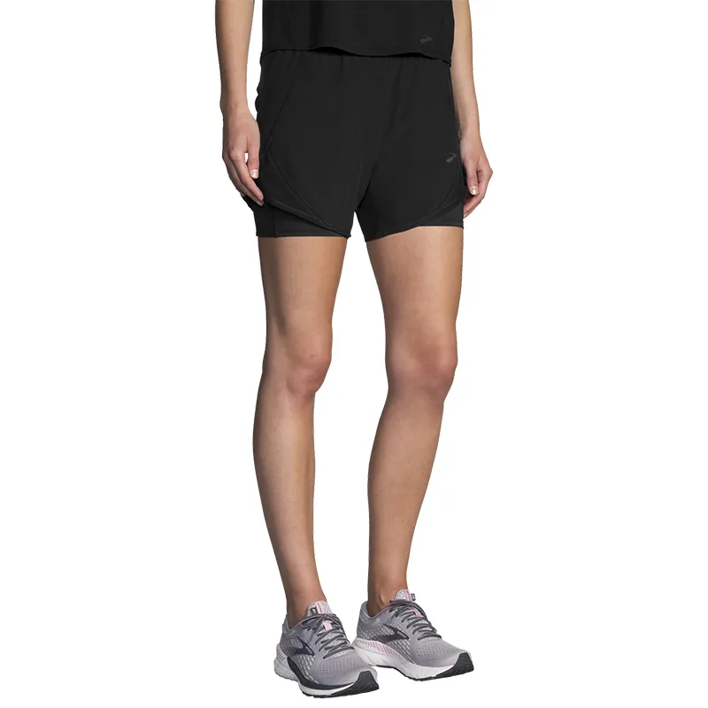 Achieve your goals without any distractions with these women's 2-in-1 running shorts, designed to give you a smooth and chafe-free running experience. The tight liner ensures a stay-put fit, while the adjustable waistband lets you customize your comfort level. With no-bounce pockets, you can carry your essentials with ease. And the best part? These shorts are crafted with sustainability in mind, so you can feel good about your purchase while you run the beautiful trails of the Eastern Sierras